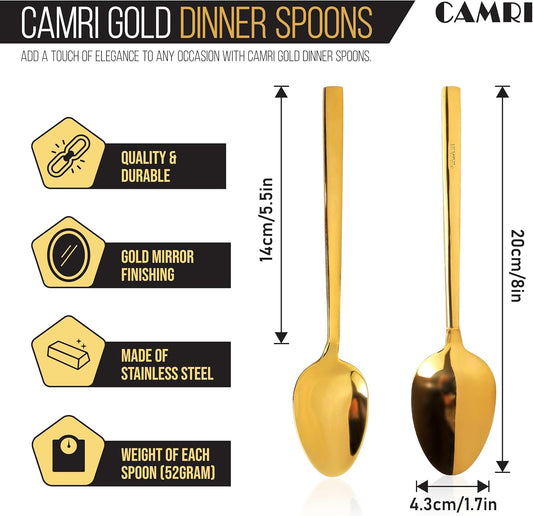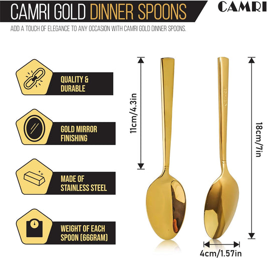 Camri Stainless Steel Dinner Spoons - Set of 6 - C37 - Gold