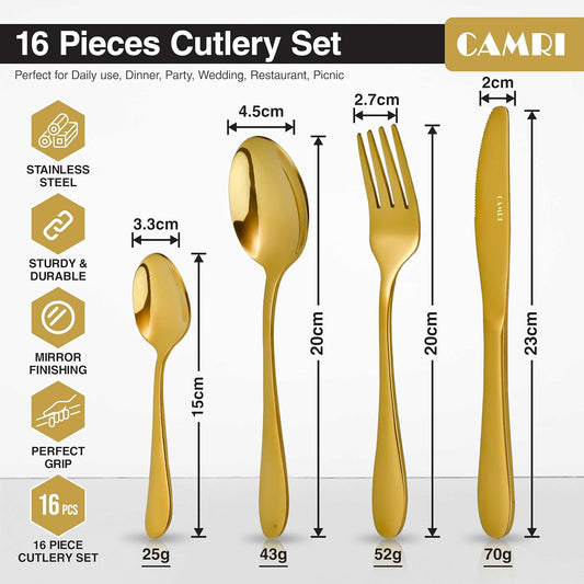 Camri Stainless Steel Cutlery Set – 16 Pieces - Gold