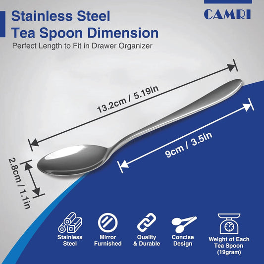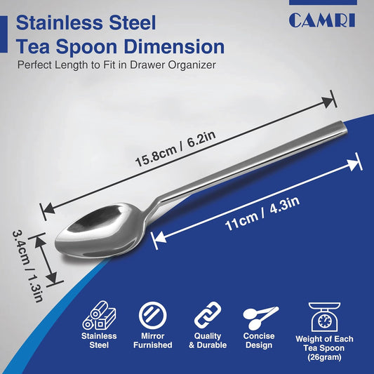 CAMRI Teaspoons Set of 6 -13.2 cm / 5.19 in, Stainless Steel Tea Spoon for Coffee & Dessert, Dishwasher Safe, Small Spoon Set for Home Kitchen & Restaurant , Model C61 (FREE UK DELIVERY)