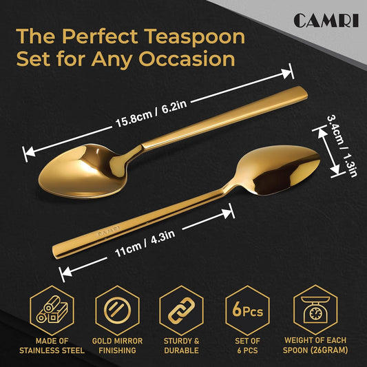 Camri Stainless Steel Teaspoons - Set of 6 – C61- Gold