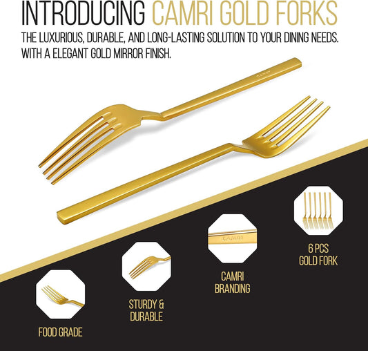 Camri Stainless Steel Dinner Forks - Set of 6 – C62 - Gold