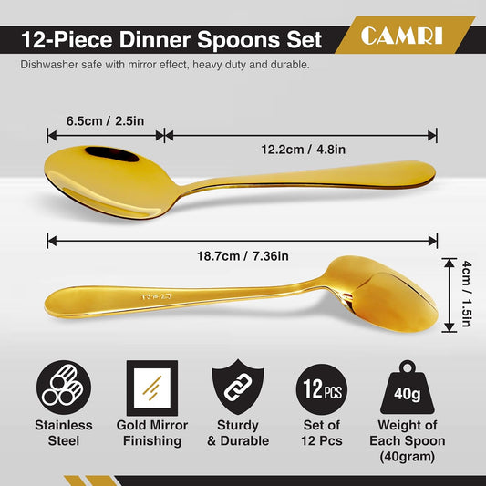 Camri Stainless Steel Dinner Spoons - Set of 12 - C61 -Gold